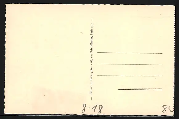 Personenbezogene Daten auf der Rückseite der Karte wurden durch blauen Textmarker unkenntlich gemacht. Die blauen Stellen sind auf die Vorderseite durchgeweicht und wirken sich negativ auf das Postkartenfoto aus