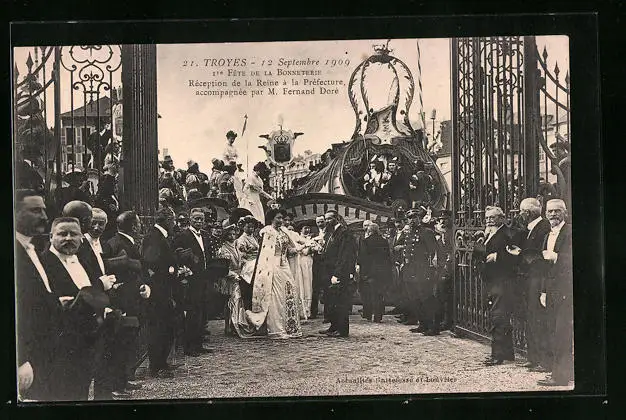 AK Troyes, Réception de la Reine à la Préfecture, accompagnée par M. Fernand Doré