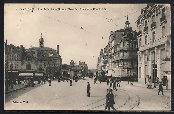 AK Troyes, Rue de la Republique, Place des Anciennes-Boucheries, Strassenbahn