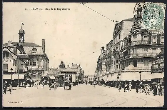 AK Troyes, Rue de la République, Strassenbahn