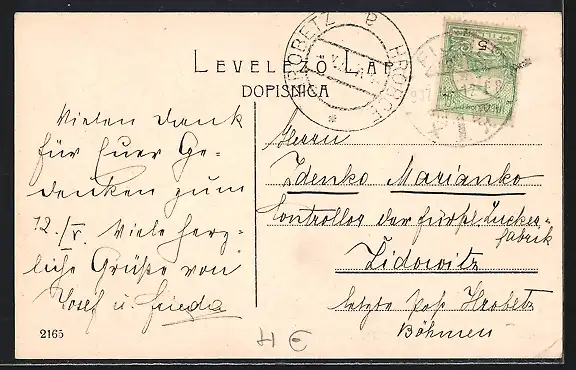 alte Ansichtskarte, gelaufen 1907, Eckknick li. unten, guter Zustand