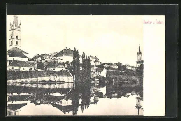 AK Tschaslau / Caslav, Ortspartie mit Kirchen
