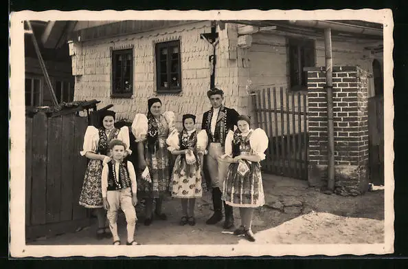AK Tschechische Familie in Tracht vor ihrem Haus