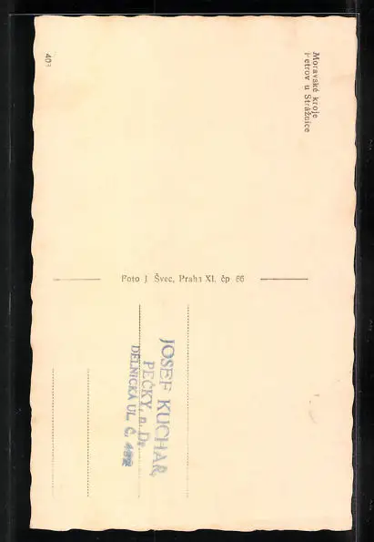Personenbezogene Daten auf der Rückseite der Karte wurden durch blauen Textmarker unkenntlich gemacht. Die blauen Stellen sind auf die Vorderseite durchgeweicht und wirken sich negativ auf das Postkartenfoto aus