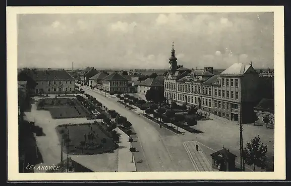 AK Tschelakowitz / Celákovice, Strassenansicht mit Anlagen