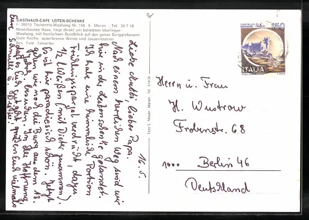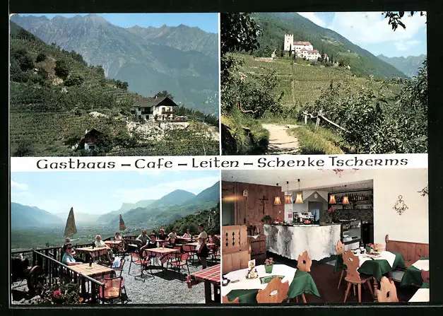 AK Tscherms, Gasthaus-Cafè Leiten-Schenke in vier Ansichten