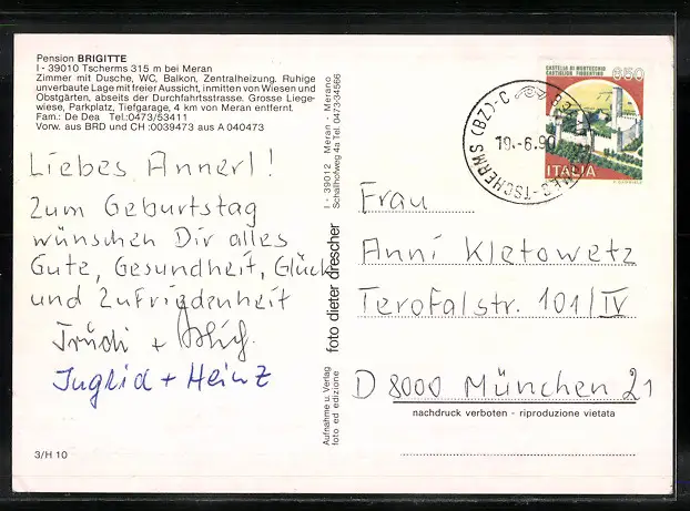 AK Tscherms, vier Ansichten von Pension Brigitte