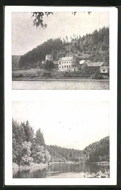 AK Tscherwena a. d. M., Flusspartie mit Blick auf Häuser
