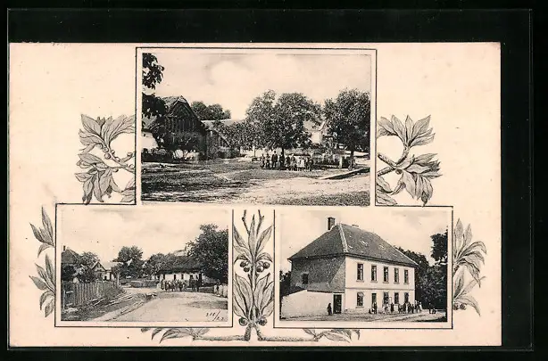 AK Tuchotice, Strassenpartie, Gasthaus, Ortsansicht