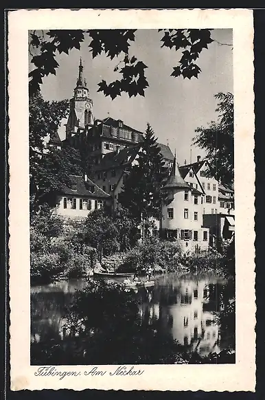 AK Tübingen Am Neckar, Teilansicht mit Kirche