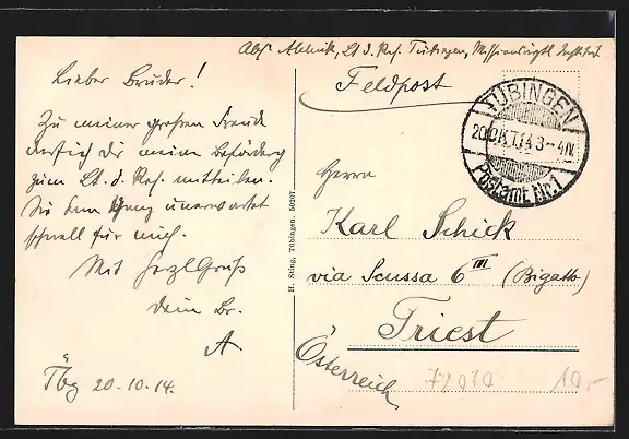 alte Ansichtskarte, gelaufen 1914, guter Zustand