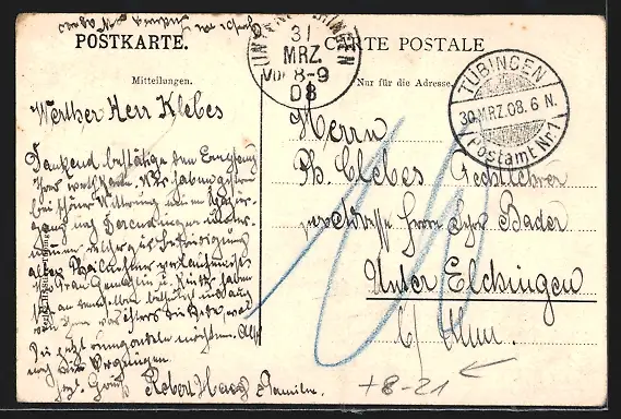 alte Ansichtskarte, gelaufen 1908, guter Zustand
