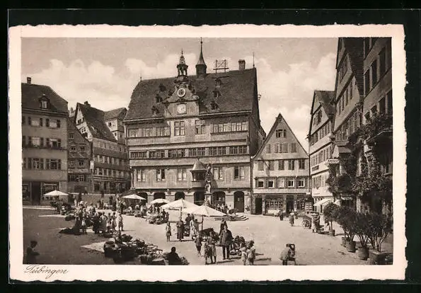 AK Tübingen, Marktplatz mit Ständen
