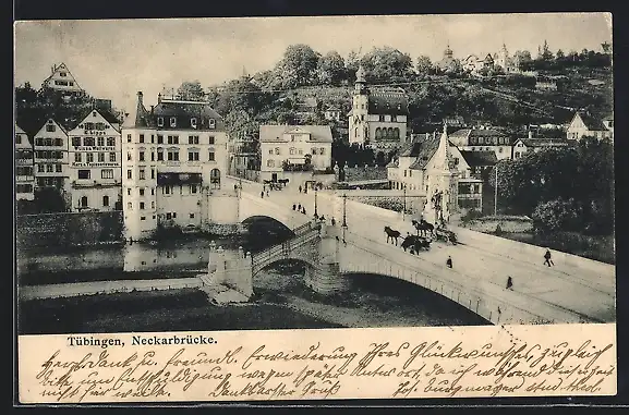 AK Tübingen, Neckarbrücke, von oben gesehen