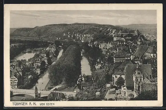 AK Tübingen, Panorama der Stadt aus der Vogelschau