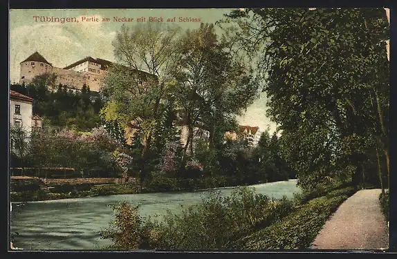 AK Tübingen, Partie am Neckar mit Blick auf Schloss