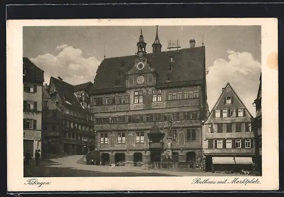 AK Tübingen, Rathaus mit Marktplatz