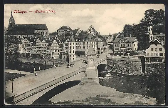 AK Tübingen, Strassenpartie mit Neckarbrücke