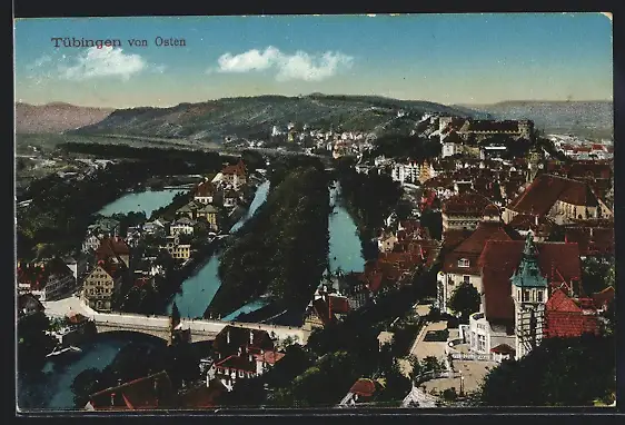 AK Tübingen, Teilansicht aus der Vogelschau von Osten