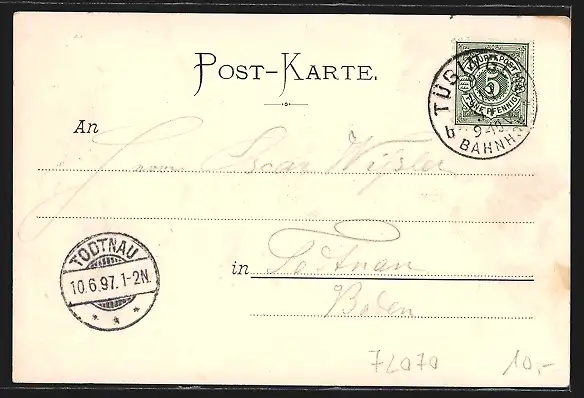 alte Ansichtskarte, gelaufen 1897, guter Zustand