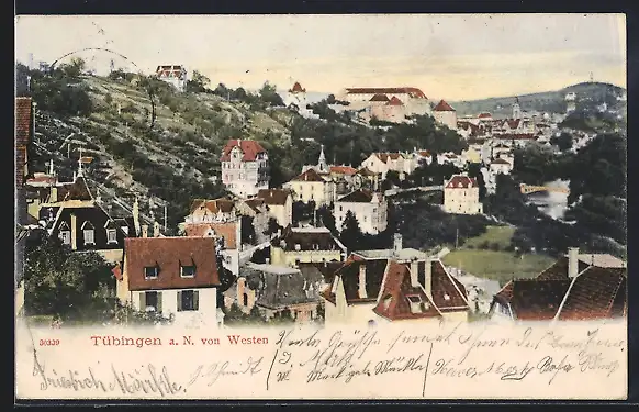 AK Tübingen a. N., Teilansicht mit Kirche von Westen