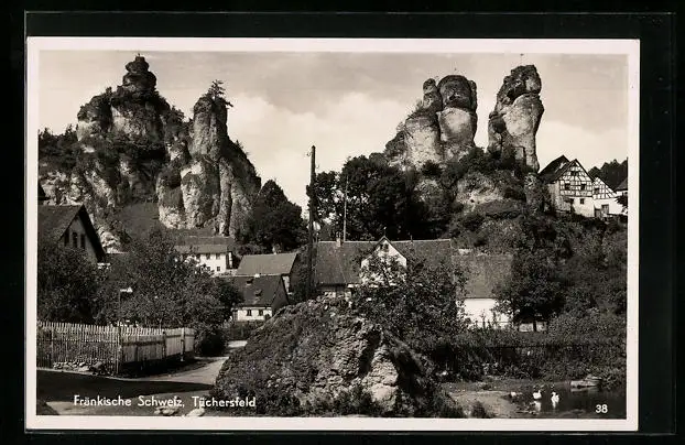 AK Tüchersfeld /Fränk. Schweiz, Ortspartie mit Bergen