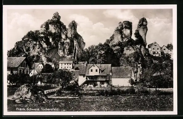 AK Tüchersfeld / Fränk. Schweiz, Ortspartie mit Felsformation