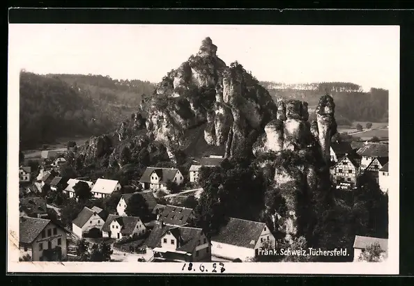 AK Tüchersfeld / Fränk. Schweiz, Ortspartie mit Felsformation