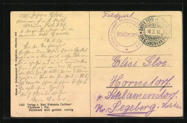 alte Ansichtskarte, gelaufen 1916, Eckknick re. unten, guter Zustand