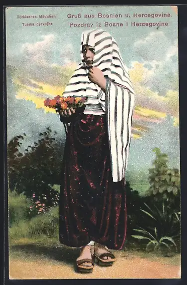 AK Türkisches Mädchen mit Kopftuch und gepflückten Blumen