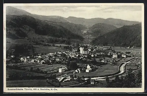AK Türnitz, Ortsansicht mit Berglandschaft