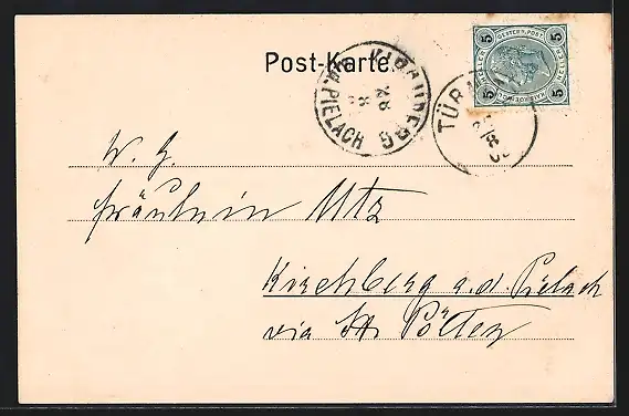 alte Ansichtskarte, gelaufen 1903, Stempelspur, guter Zustand