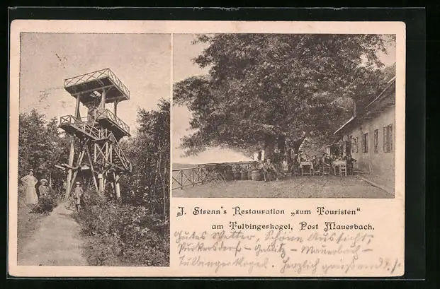 AK Tulbing, J. Strenn`s Restauration zum Touristen am Tulbingerkogel, Aussichtsturm