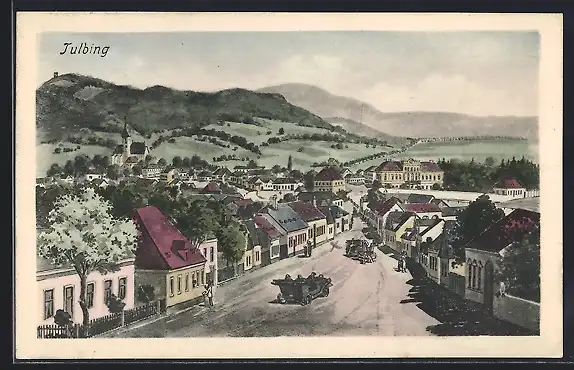 AK Tulbing, Strassenpartie aus der Vogelschau