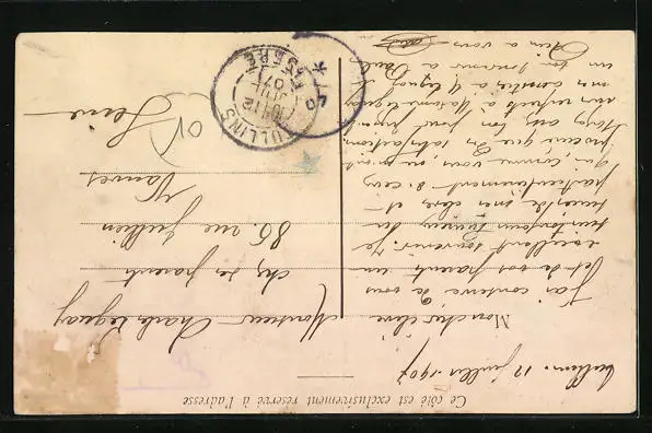 gelaufen 1907, Briefmarke entfernt, guter Zustand