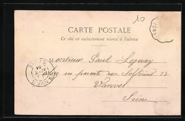 gelaufen 1904, Briefmarke entfernt, guter Zustand