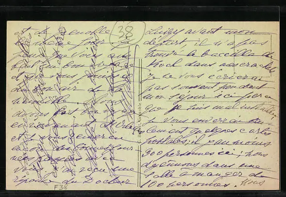 Personenbezogene Daten auf der Rückseite der Karte wurden durch blauen Textmarker unkenntlich gemacht. Die blauen Stellen sind auf die Vorderseite durchgeweicht und wirken sich negativ auf das Postkartenfoto aus