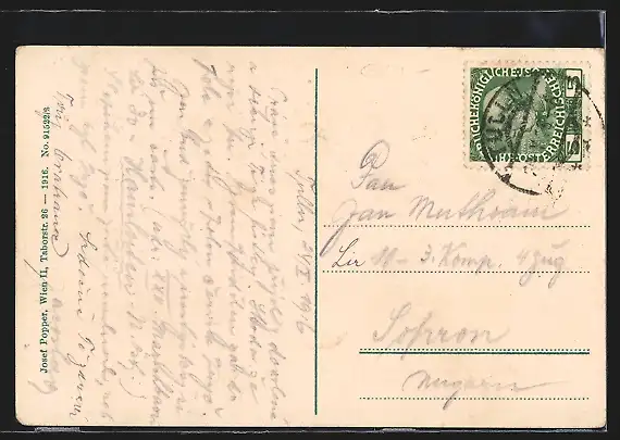 gelaufen 1916, Eckknick oben li., guter Zustand