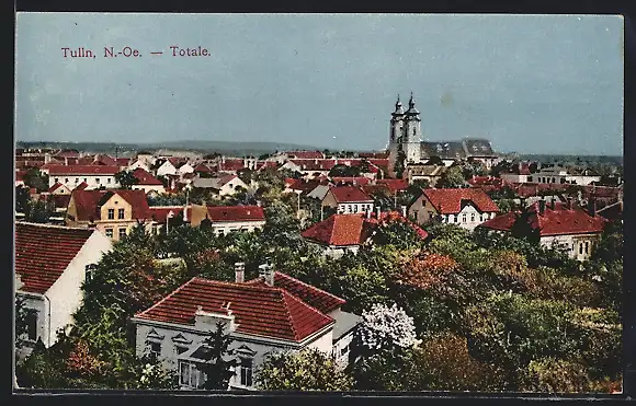 AK Tulln, Ortsansicht mit Kirche aus der Vogelschau