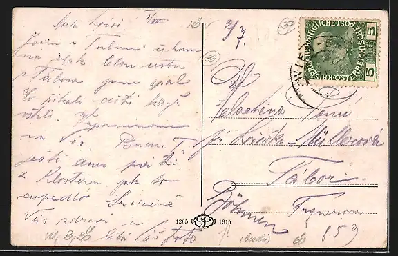 Personenbezogene Daten auf der Rückseite der Karte wurden durch blauen Textmarker unkenntlich gemacht. Die blauen Stellen sind auf die Vorderseite durchgeweicht und wirken sich negativ auf das Postkartenfoto aus