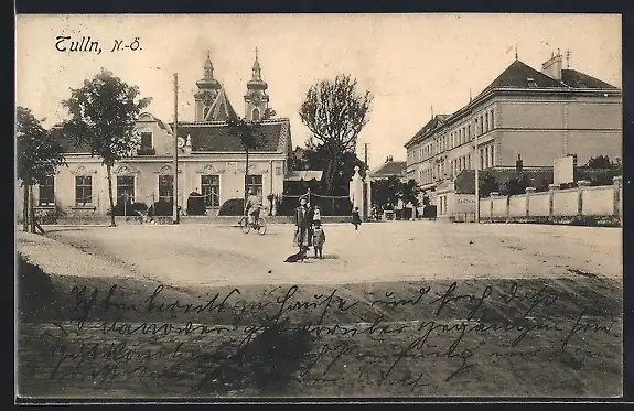 AK Tulln, Wienerstrasse mit Jubiläums Volks- und Bürgerschule