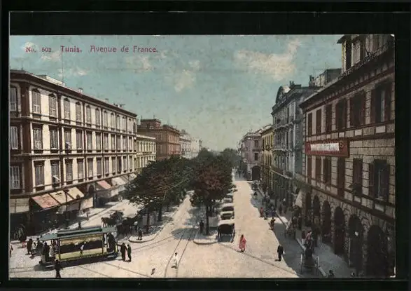 AK Tunis, Avenue de France, Strassenbahn