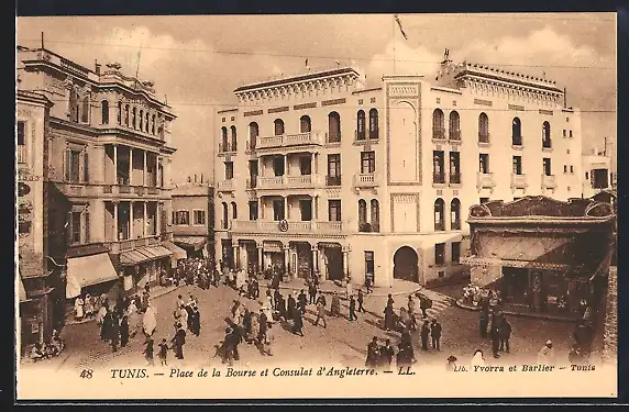 AK Tunis, Place de la Bourse et Consulat d`Angleterre