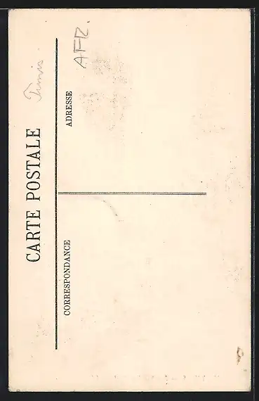 Personenbezogene Daten auf der Rückseite der Karte wurden durch blauen Textmarker unkenntlich gemacht. Die blauen Stellen sind auf die Vorderseite durchgeweicht und wirken sich negativ auf das Postkartenfoto aus