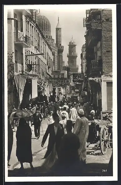 AK Tunis, Rue de Bazar, Blick in die Bazarstrasse