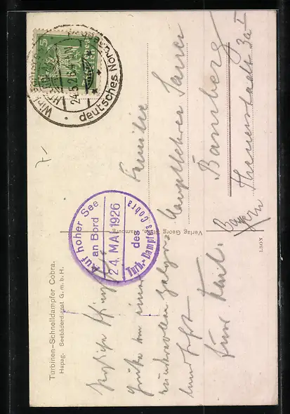 alte Ansichtskarte, gelaufen 1926, Stempelspur, Bugspur li. oben, guter Zustand