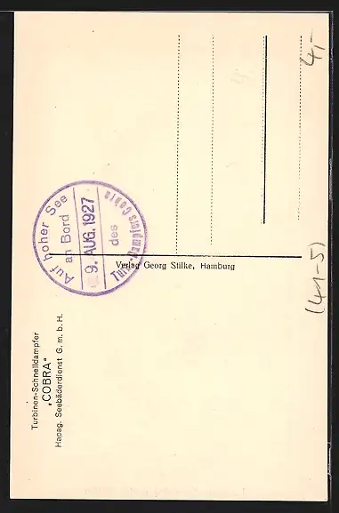 AK Turbinen-Schnelldampfer Cobra in voller Fahrt
