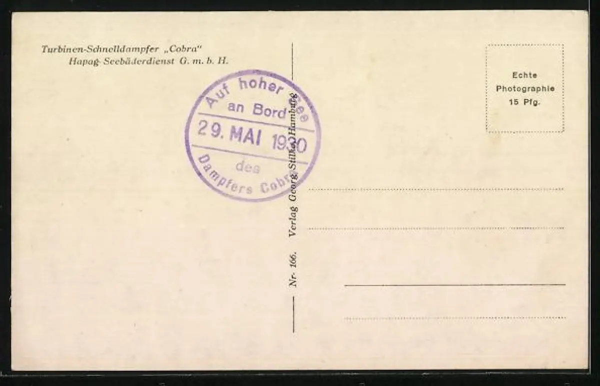 AK Turbinen-Schnelldampfer Cobra vom Hapag-Seebäderdienst auf hoher See, Passagierschiff
