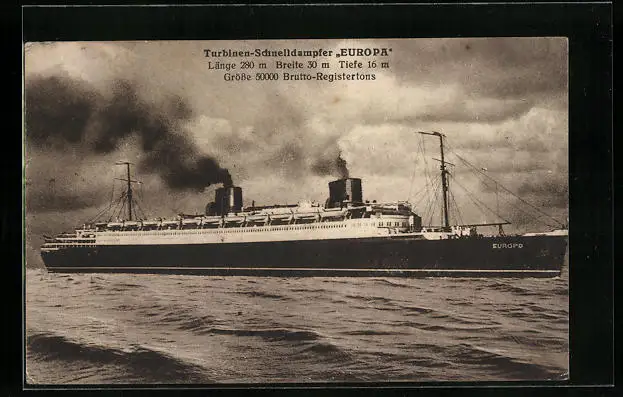 AK Turbinen-Schnelldampfer Europa gibt Volldampf