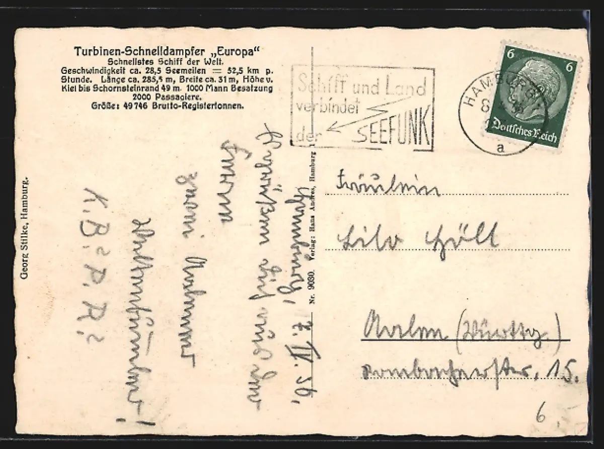 AK Turbinen-Schnelldampfer Europa in Fahrt